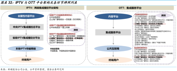 ①牌照优势。省级IPTV牌照发放4张,OTT内容服务牌照发放16张,集成服务牌照发放7张,其中芒果超媒均获得授权。