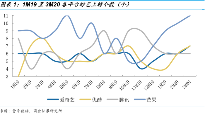 1.1 17~19年网综竞争激烈,20年起芒果“第一”地位稳固