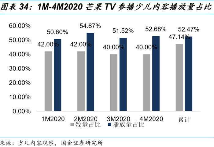 ②少儿内容。全国较多省市IPTV端影视区和少儿区分开收费,用户另行为少儿内容付费或推动ARPPU值增长。芒果TV背靠金鹰卡通,少儿内容上具有竞争优势。