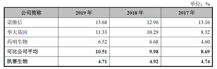 如果把凯赛生物的研发费用率和其他生物类公司一起比较就可发现,公司的研发投入并不突出。