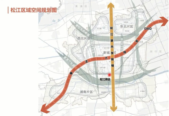松江枢纽是长三角更高质量一体化国家战略和G60科创走廊重要支点和引擎。作为上海卓越全球城市的城市级枢纽,是上海市西南方向疏解虹桥枢纽压力、服务全市域的重点锚固节点,可有效带动和激活松江新城南部区域功能提升,形成功能多元、开放融合的“城市客厅”。