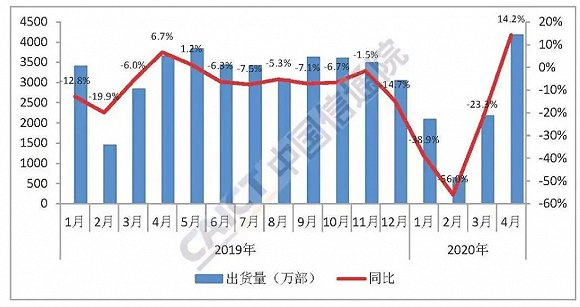 1月出货量为2081.3万部,2月因疫情影响骤降至638.4万部;随着情况好转和5G新机陆续上市,3月出货量达到2175.6万台恢复疫情前规模;到了4月,出货量环比增长近100%达到了4172.8万部,同时也来到了自2019年1月以来近16个月的市场表现最高点。