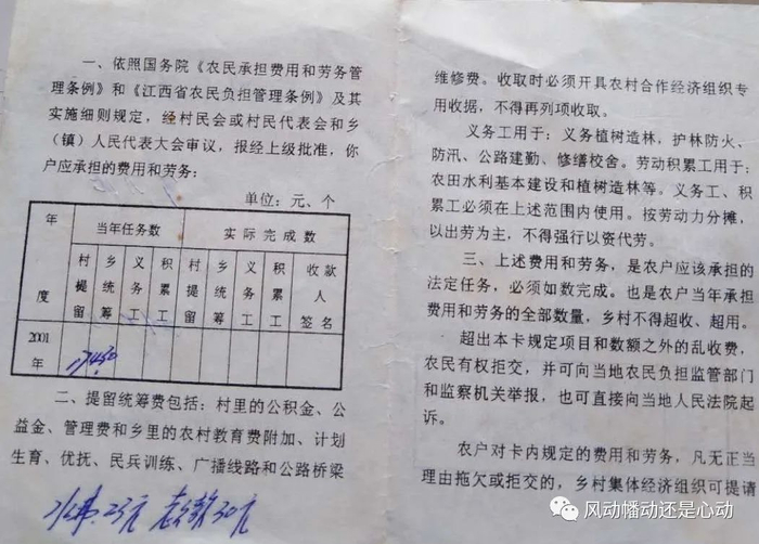 虽然每年有些变化,到2001年我们家依然要交村提留17元,乡统筹4.3元,农田水利费23元,老乡款30元(听妈妈说当年乡里修路每个农村户口摊派费)。