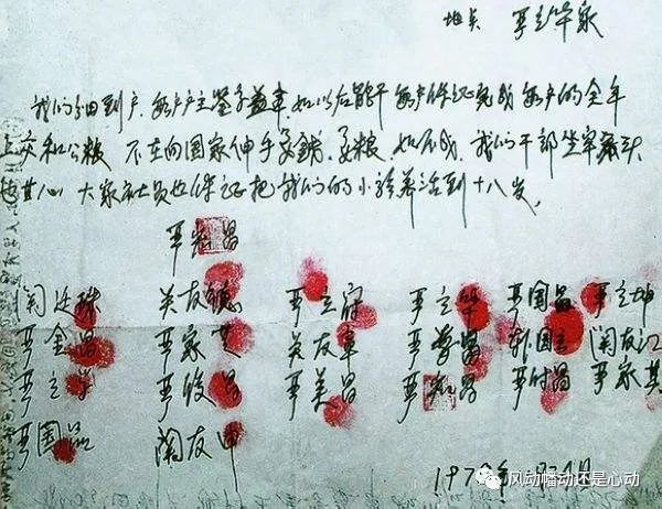 1978年11月24日,在安徽省凤阳县小溪河镇小岗村人民公社社员严立华家,发生了一件不寻常的大事:小岗大队的18位社员在生产队长严俊昌的带领下,以“托孤”形式,冒着巨大的风险按下红手印,将村集体土地“分田到户”,拉开了中国农村改革的序幕。
