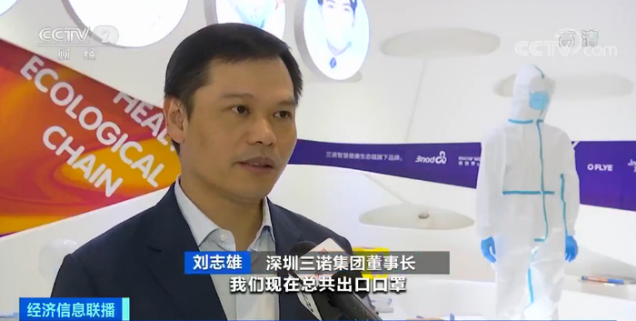 深圳三诺集团董事长 刘志雄 :我们现在总共出口口罩,应该有一个多亿只了。现在每天几百万只口罩出货,出给二三十个国家,包括像印度、俄罗斯。所以我相信,我们一个月出口两三亿只口罩,应该很正常。