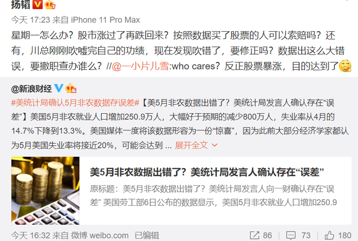超级大反转!特朗普要被"打脸"?引爆美股暴涨1000点数据,竟是假的!网友:星期一怎么办?