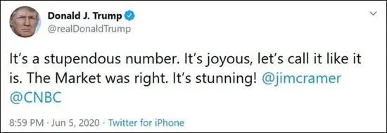 这段评述也得到特朗普的点赞:“咱们姑且称之为,令人愉悦的数字吧。市场是对的。这数字太惊人了!”
