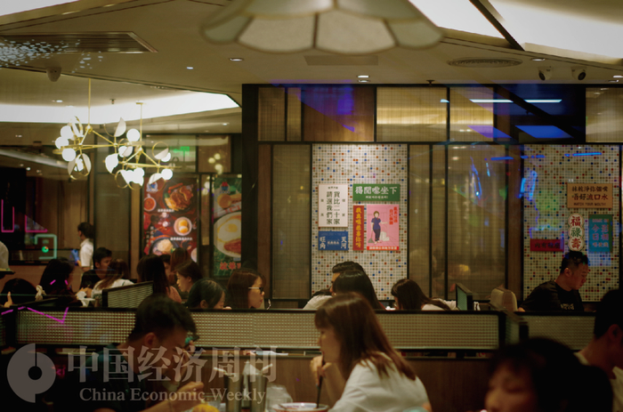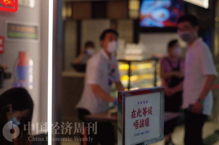 天河路商圈一家港式茶餐厅外,有顾客正在取号 摄影:《中国经济周刊》记者 罗赟