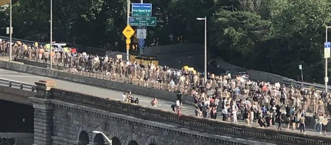 纽约当天也有数千名示威者从布鲁克林大军广场开始游行,穿过市区、布鲁克林大桥,最终来到位于曼哈顿的纽约市政厅。他们高举着包括“没有正义,就没有和平”、“停止资助警察”等各式各样的标语。