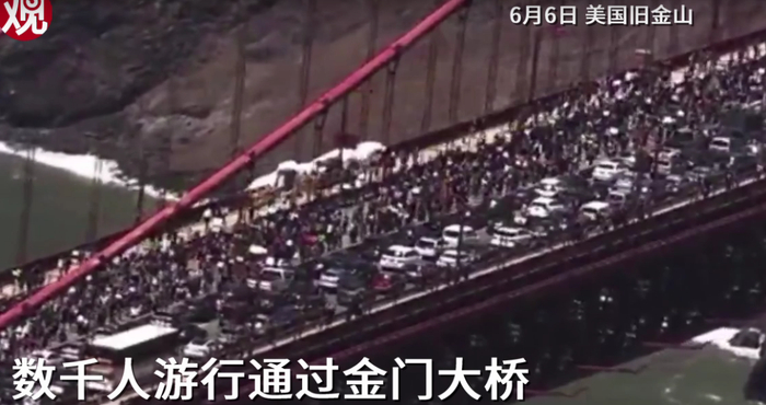 在旧金山,示威者在金门大桥的游行一度致使桥上交通受阻。