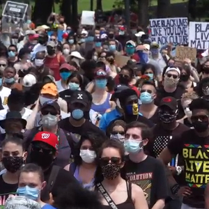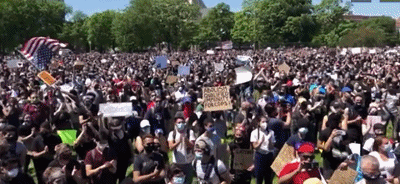 在伦敦市中心议会大厦前,数千民众高举标语,声援美国国内因乔治·弗洛伊德遭警察暴力执法致死而引发的抗议浪潮。很多示威民众表示,英国国内同样存在严重的种族歧视问题。