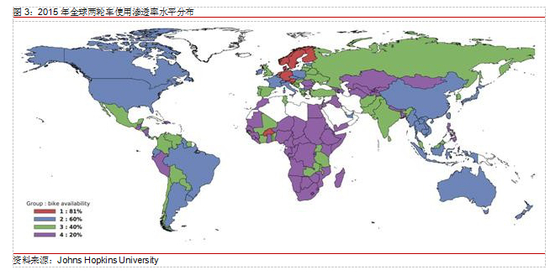 欧洲、亚太、美洲是两轮车主要的消费地区,西欧、北欧国家两轮车渗透率最高。两轮车作为交通末梢的重要交通工具在全球普及,数百个国家整体使用渗透率超过50%,欧洲、亚太地区和南北美洲是两轮车主要的消费地区。欧洲骑行文化盛行,两轮车渗透率最高,北欧、西欧国家高达 80%;亚太地区中,中国、日本和东南亚国家普遍渗透率超过 60%,俄罗斯及南亚国家渗透率相对略低;北美和以巴西、阿根廷为代表的部分南美国家两轮车普及度也很高,可达 60%的渗透率水平;非洲和中亚地区分别由于经济发展相对落后、交通活动半径大等原因,渗透率在 20%及以下。