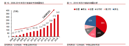 电踏车作为新型兼具通勤+运动休闲属性的两轮车在海外兴起。欧洲是目前全球最大的电踏车市场,2019 年欧洲共销售电踏车 340 万辆,同比增长 22.3%,以平均单价 1500欧元计,市场规模已超 50 亿欧元,对比 2006 年的销量 9.8 万辆,13 年 CAGR 达 31%。欧洲自行车工业协会疫情前预计2020 年欧洲电踏车销量将达450 万辆,长期增长趋势强。