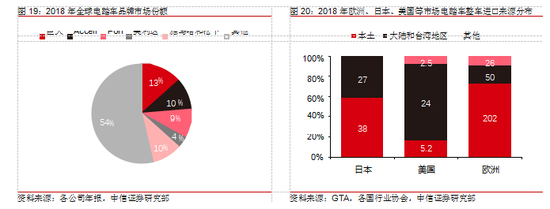 电踏车整车品牌格局相对分散,中国凭借整车/电机出口占据产业链重要位置。欧洲最大电踏车制造商 Accell 2019 年销量达 43.3 万辆,同比增长 13.7%,欧洲第二大电踏车制造商 Pon 的销量在 40 万辆左右,但二者在欧洲市场份额仅 10%水平,电踏车整车品牌格局相对分散。美国、欧洲等地由于本土制造成本高, 主要通过由上百个进口商从海外进口组件再在当地组装的方式进行销售:其中美国2018 年进口量达 26.5 万台,超过 90%来自中国大陆和中国台湾地区;2018 年日本共销售电踏车约 67 万辆,日本本土生产商雅马哈和松下占据了约 60%的份额,合计销售电踏车 38 万辆,其余部分也从中国进口;欧洲 2018 年整车约 25%直接进口自中国大陆和中国台湾地区,根据海关数据估算约 30%电踏车电机进口自中国再进行本土组装。凭借成熟的产业链、较低的制造成本,通过整车、核心零部件件出口和代加工的经营模式,中国厂商在迅速兴起的全球电踏车产业链占据一席之地。