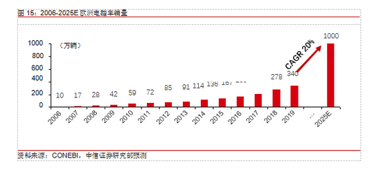 欧洲电踏车市场容量有望达到千万级。在欧洲自行车文化最为盛行的荷兰,每年自行车销量保持在 100 万辆左右,电踏车渗透率超过 40%,我们预计到 2025 年荷兰电踏车渗透率将达 50%。目前欧洲电踏车渗透率约 15%,与荷兰 2010 年的渗透率水平相当,假设欧洲电踏车沿荷兰相似路径渗透,我们预计到2025 年欧洲电踏车市场容量将达1000 万辆。