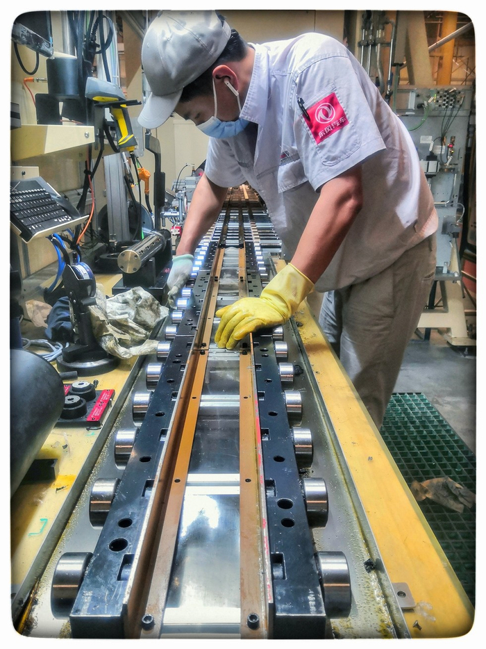 改善轨道油积堆——缸体检查工位经常油污密布,李贵友在此安装托盘塑料隔离层,让污泥浊水容易擦拭,现场5S焕然一新。