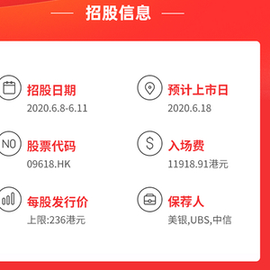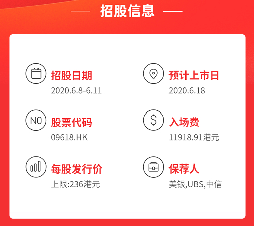 京东此次招股,最高定价为每股236港元,按每手50股计,每手入场费将为11919港元。