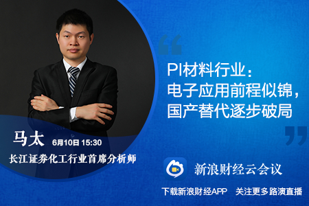 6月10日15:30,长江证券化工行业首席分析师马太带来《PI材料行业——电子应用前程似锦,国产替代逐步破局》分享。点击查看直播>>