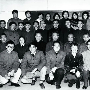 1981年第一期联合国译训班毕业合影。刘军(一排左一)、郎胜铄(一排右二)、何亚非(一排右三)、周育强(三排左三)、崔天凯(三排右六)、蒋保忠(三排右三)、刘结一(四排左一)、施晓菁(四排右六)与张载梁(二排右一)、董黎(四排左三)等老师在一起。图/受访者提供