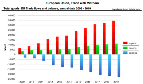 一直以来,越南企业在进入欧洲市场方面存在诸多困难。越南工贸部多边贸易政策司司长梁黄泰表示,每年欧盟进口额达2.338万亿美元,但越南对欧盟的出口额仅占2%,42%的越南对欧盟出口金额享受普遍优惠制(GSP)零关税。而实际上,越南是欧盟在东盟的第二大贸易伙伴,欧盟是越南第二大出口市场。