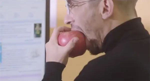 又或者当圆梦小分队去往阴间试图调取某人档案的时候,前台会指着一个造型颇似乔布斯的外籍小哥说,喏,自打这哥们来了以后,我们就开始无纸化办公了。然后镜头一转,这哥们还咬了一口苹果↓↓