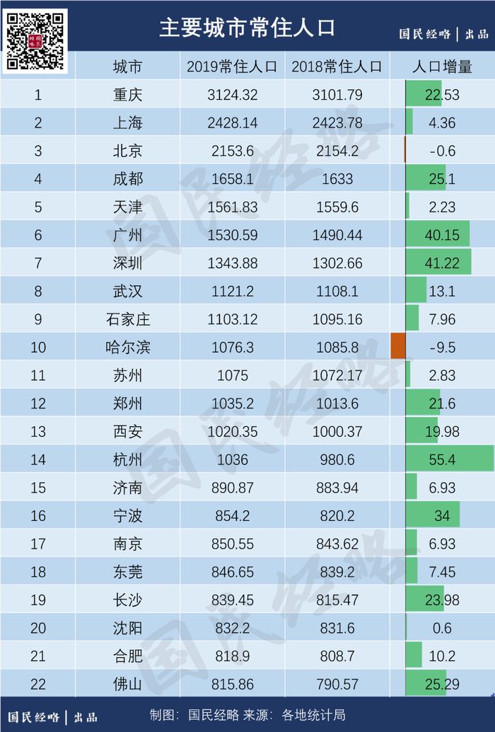 北京、上海、重庆,广州、深圳、成都,这意味着,全国至少有6个城市实际人口超过2000万。