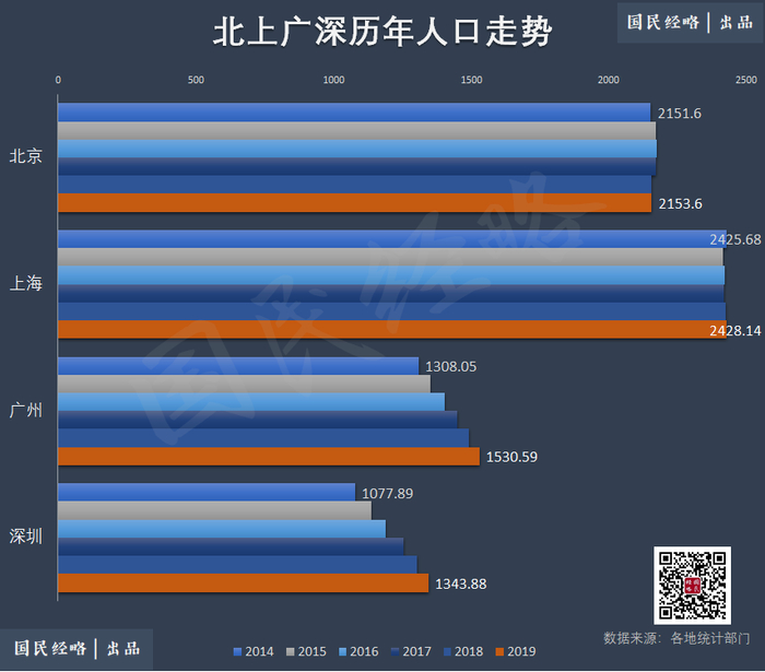 北京、上海作为超级大都市自不待言,这两地一直都在主动控制中心城区人口。最近几年,广州、深圳每年新增人口都在40万人以上,而北京、上海基本原地踏步,这就是核心原因所在。