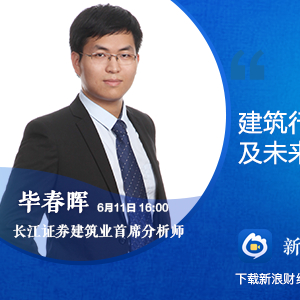 6月11日16:00,长江证券首席建筑行业首席分析师毕春晖带来《建筑行业发展现状及未来趋势》分享。点击查看直播>>