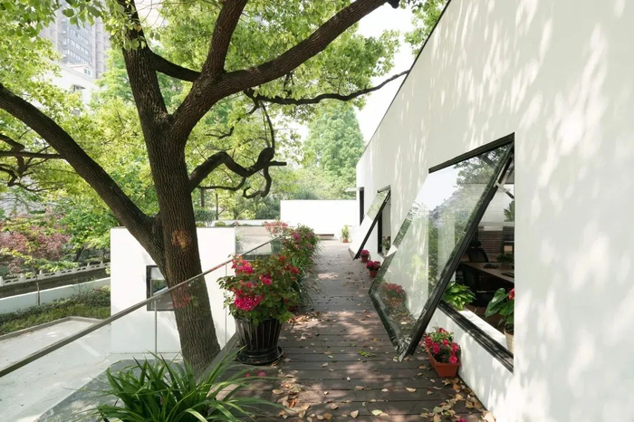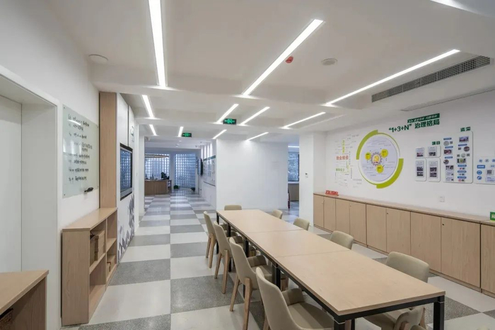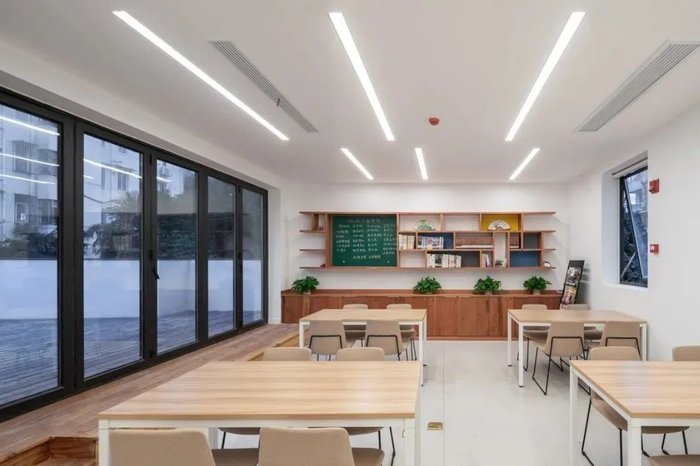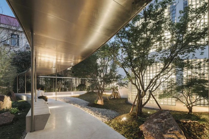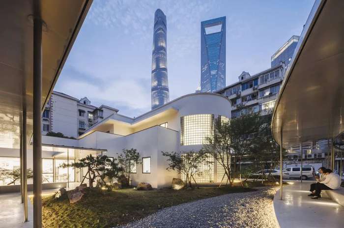 设计师拆除院子的围墙和铁门,通过新设计的游廊重新组织空间,与建筑物连接体,围合出微型的园林,为社区创造一种融入日常的精神空间。建筑内部提供事务受理、公益分享、议事平台、读书阅览、社团活动等多样化的功能。