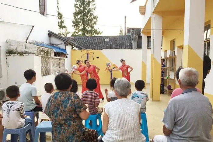 四家建筑工作室联合设计,用经济的材料、简单易行的手法,将室外空间变成一直充满“阳光”的环境。盈浦街道妇联推动社区治理创新,在小院持续开展多种互助活动,让其成为居民心中的“阳光客厅”。