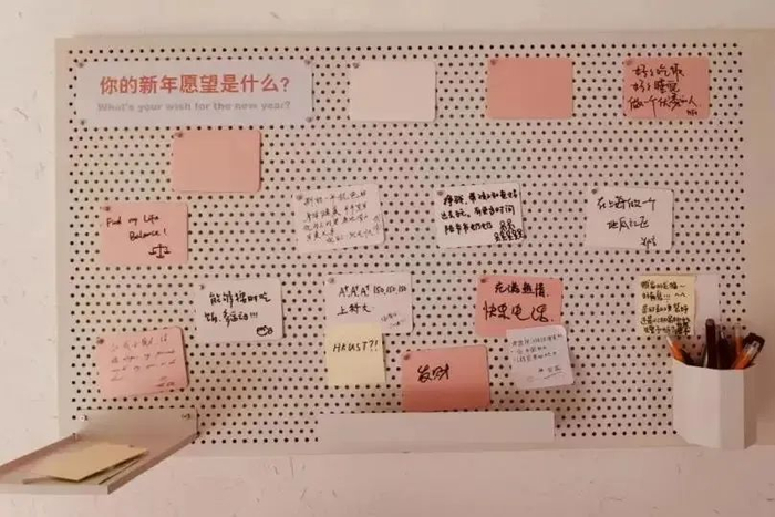 ▲敞亮的落地式玻璃可变为座椅飘窗。居民分享的旧物逐渐填满格物架。易物角落的留言表达着美好的心愿。
