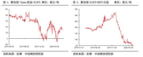 在VLSFO纸货活跃之前,新加坡市场的VLSFO多以10PPm柴油计价,2020年以来,柴油-VLSFO价差高位下降一度呈现负值,近期稳定在低位,辅助证实VLSFO是一种主产品;VLSFO-HSFO价差低位,为高低硫转化、VLSFO持续扩大市场份额创造了有利条件。