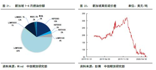 低硫燃油裂解-汽油裂解价差可以作为低硫燃油产量的领先指标;2020年以来国产低硫燃油大部分用于出口形式加注,与2020年以来国内燃料油加注多为低硫燃油一致。