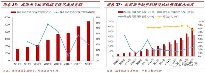 ②城轨市场:“新基建”加速投资规划,维保市场迎来黄金发展期。截至2019年底,我国城市轨道交通运营里程为6730.27km。中国城市轨道交通协会预测,未来10年全国城市轨道交通总运营里程将持续增加,每年新开通线路里程也呈逐年增加趋势。2019年我国城市轨道交通运营维保后市场规模约为1682亿元。至2029年,城市轨道交通总建设投资将达到19.5万亿(按每公里平均造价10亿进行估算),运营维保市场规模将达到4875亿元。