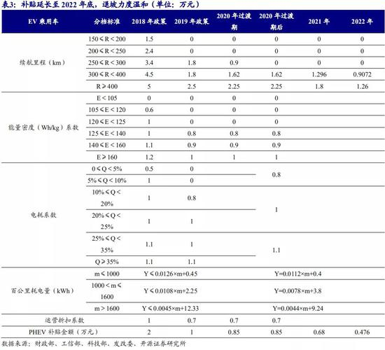 新能源补贴延长至 2022 年,退坡力度温和,降低企业经营风险。2020 年中国新能源 车补贴政策中,2020 年 EV 乘用车补贴金额较 2019 年降低 10%,2021/2022 年 EV 补贴分别在上一年基础上退坡 20%/30%;PHEV 乘用车退坡 15%;公共交通等领域汽车 2020 年不退坡,2021-2022 年补贴标准分别在上一年基础上退坡 10%、20%;新能源货车退坡 10%-30%不等,客车补贴保持不变。补贴门槛略有提升,续航里程下限由 250km 提升至 300km,能量密度保持不变,能耗要求略有提升。此次退坡幅度趋缓,并将补贴延续至 2022 年底,修复了产业预期。同时新补贴政策期持续三年,有助于企业在产品开发和财务方面进行合理规划,降低了经营风险性、提升了盈利稳定性。