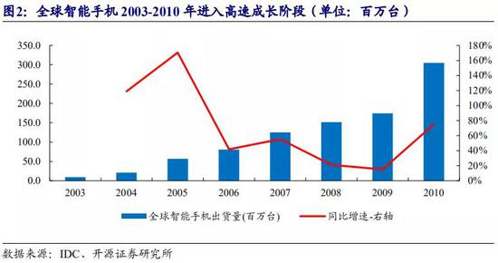 2000 年以后,以便携式手机、MP3 为代表的消费电子行业进入了高速成长阶段。以智能手机为例,2003 年出货量为 957 万台,2010 年增长至 3.05 亿台,年均复合增长达到 63.97%。下游消费电子终端产品爆发式的增长拉动了锂离子电池消费需求,从而提升了行业成长的天花板。而这个时期,全球锂电池在材料体系的创新速度明显放缓,出现日本企业的技术向东亚各国外流的趋势。日本锂离子电池企业以及锂离子电池上下游产业链开始受到韩国、中国的冲击。