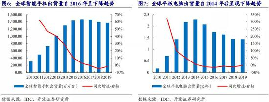 随着市场发展,消费锂离子电池进入成熟阶段,全球平板电脑和智能手机分别于 2014 年和 2016 年触顶下滑。2011-2019 年全球消费电子市场放缓,以智能手机和平板电 脑全球出货量为例,2016 年全球智能手机出货量达到 14.7 亿台的历史最高水平后, 年销量开始呈现下滑趋势。平板电脑在 2014 年全球出货量达到 2.4 亿部的历史最高 水平后,出货量也逐年下滑。