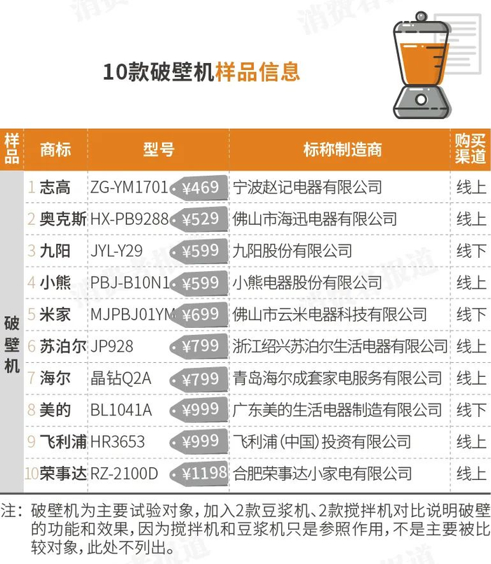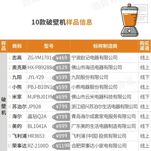 针对上述疑问,佛山市消费者委员会委托专业第三方机构对市面热销的10款破壁机进行了比较试验工作。