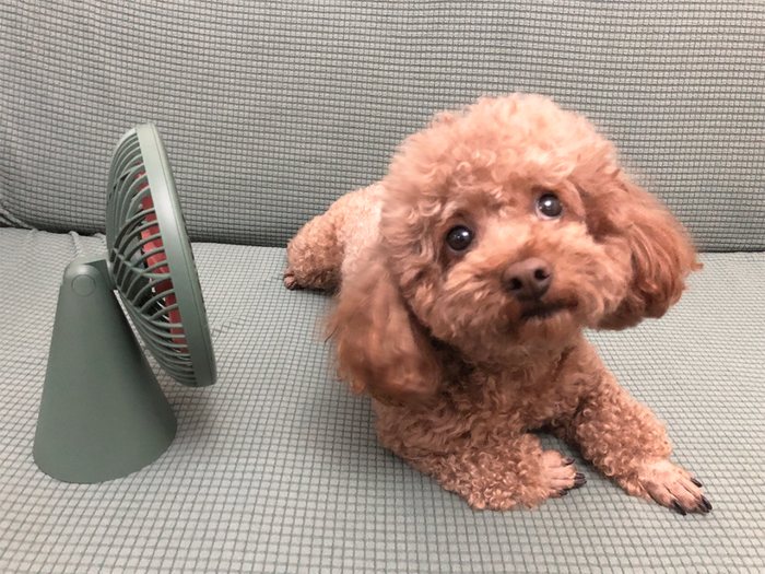 把它放在沙发上,家里狗子自觉就趴在风扇前乘凉了