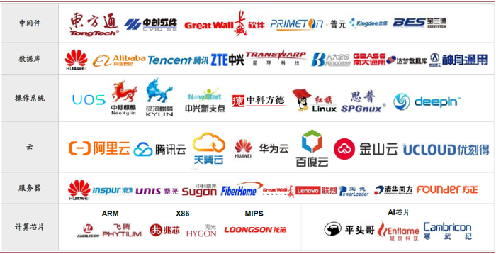 资料来源:中科曙光,中国长城,兆芯,龙芯等公司官网,中金公司研究部
