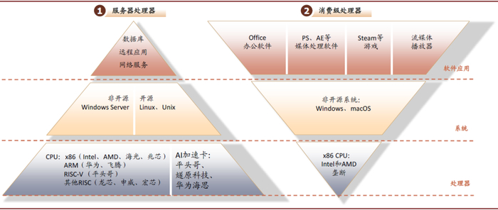 图表: 服务器及消费级CPU的软硬件、架构有所不同