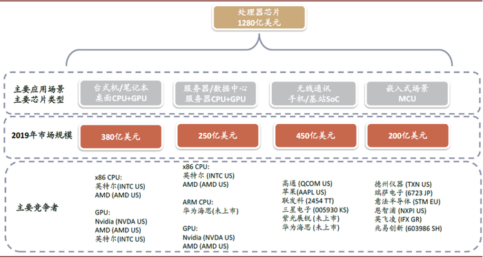 图表: 全球处理器芯片的主要应用、类型和主要竞争者