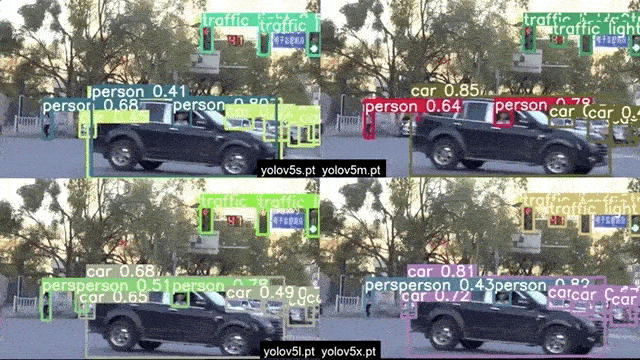 YOLOv5在中国国内街景监控上的实测,包含了YOLOv5 s/m/l/x四种不同权重: