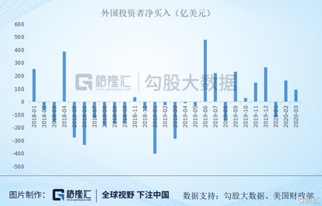因为许多数据没有更新,所以我们只能去猜测。美国财政部披露的外国投资者数据是更新到2020年3月,正好赶上了美股这波大跌。
