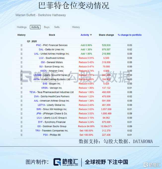 唯一可能能知晓4月、5月一些操作的大佬就是90岁高龄的巴菲特,从最新的13F文件可以看出,3月份的时候巴菲特几乎清了高盛,但确实贪婪了一下,他增持了航空股,增持了达美航空,增持了联合航空,但随后他清仓了航空股,而且基本上割在了地板上。