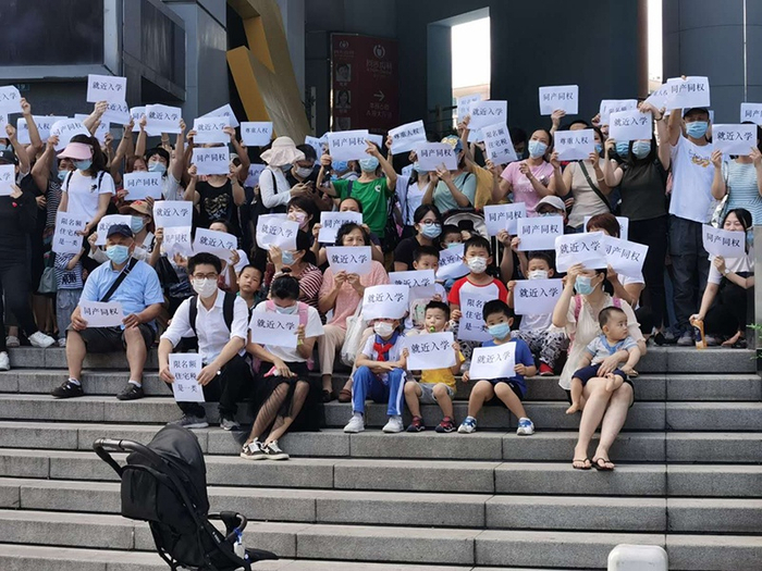 6月1日儿童节当天,涉事的8个小区数百名业主为孩子上学问题集体来到福田区教育局门口,希望能得到明确回应。其中多位业主,跪在福田区教育局门口,希望能够获得转机。
