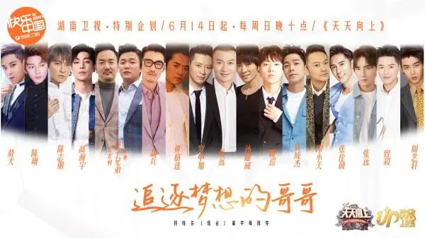 6月5日,《天天向上》官博发布消息官宣季度特别企划“追逐梦想的哥哥”正式开启,消息一经发布,就获得了大量网友广泛关注。据了解,该系列共策划播出4期,本周日晚10点将播出首期节目,筷子兄弟(肖央、王太利)、曾毅、陈志朋、孙耀威、胡兵、聂远、罗中旭、印小天,黄格选、张伦硕、敖犬、周艺轩、陈翔、张远、高瀚宇、魏巡、袁成杰,共18位哥哥将在此集结,带着未完成的梦想,从“心”再出发。