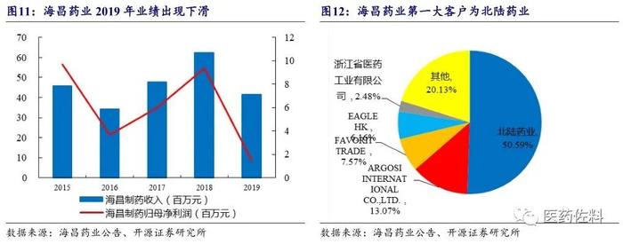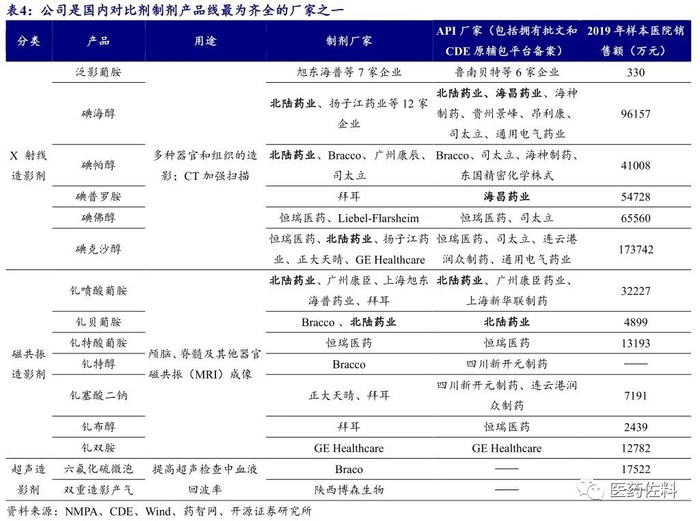 海昌药业拥有碘海醇原料药批文,碘普罗胺在CDE原辅包登记平台获准登记,拥有生产碘海醇、碘帕醇、碘佛醇、碘普罗胺的全套工艺技术。2019年海昌药业实现营业收入4343万元(-33.45%),其中碘海醇销售收入4138万元,归母净利润146万元(-84.43%),业绩下滑主要是由于重要原材料一氯化碘供应商浙江海川化学品有限公司受响水县“3·21”事件影响进行安全环保整改,导致原材料无法正常供应,碘对比剂产能下降。公司为海昌药业的第一大客户,2019年销售收入占比为50.59%。
