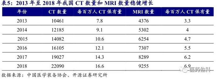 2.1、CT和MRI保有量持续增加,对比剂行业有望保持稳健增长