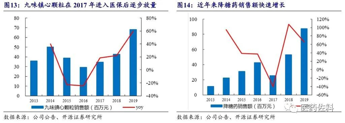 3、九味镇心颗粒纳入医保后步入成长期,格列美脲集采中标有助于市占率提升